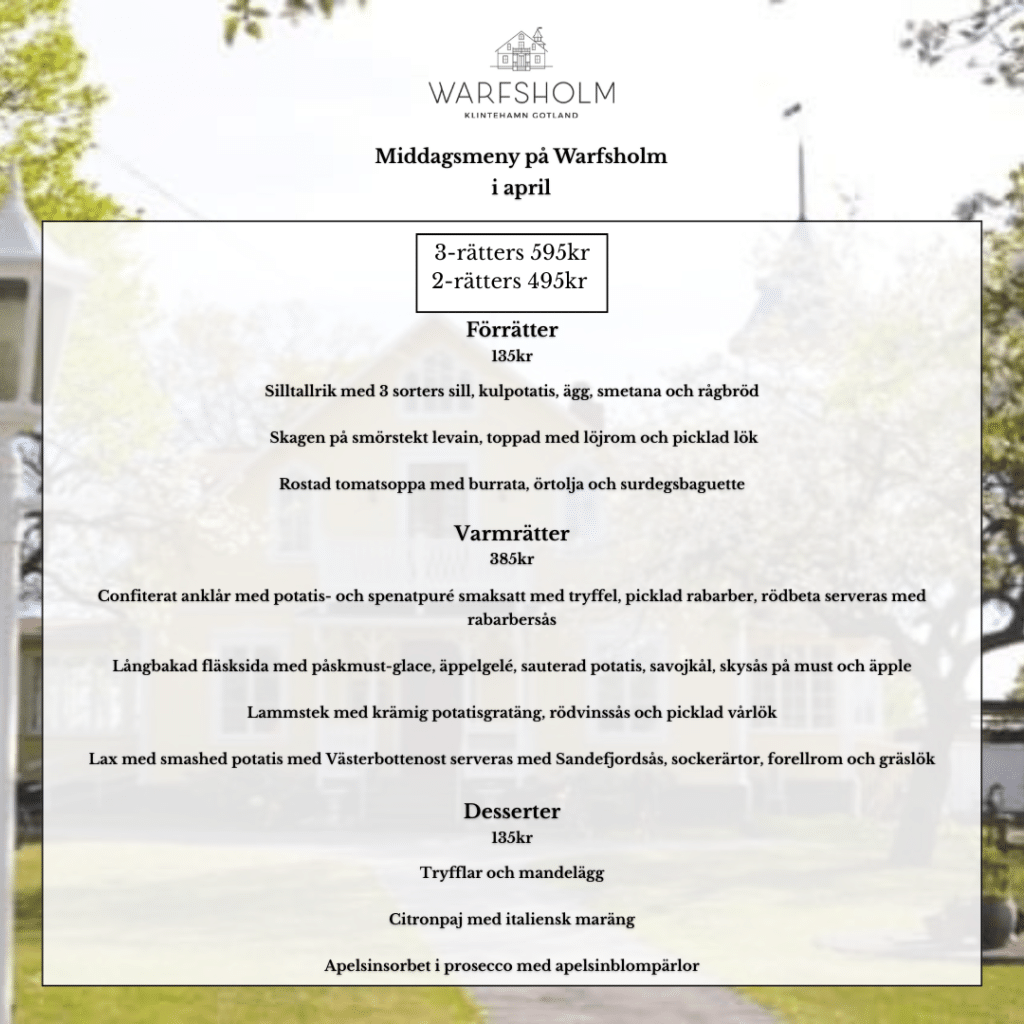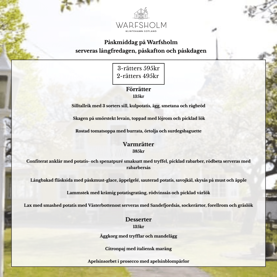 För att vara säker på att få plats, mejla till bokabord@warfsholm.se